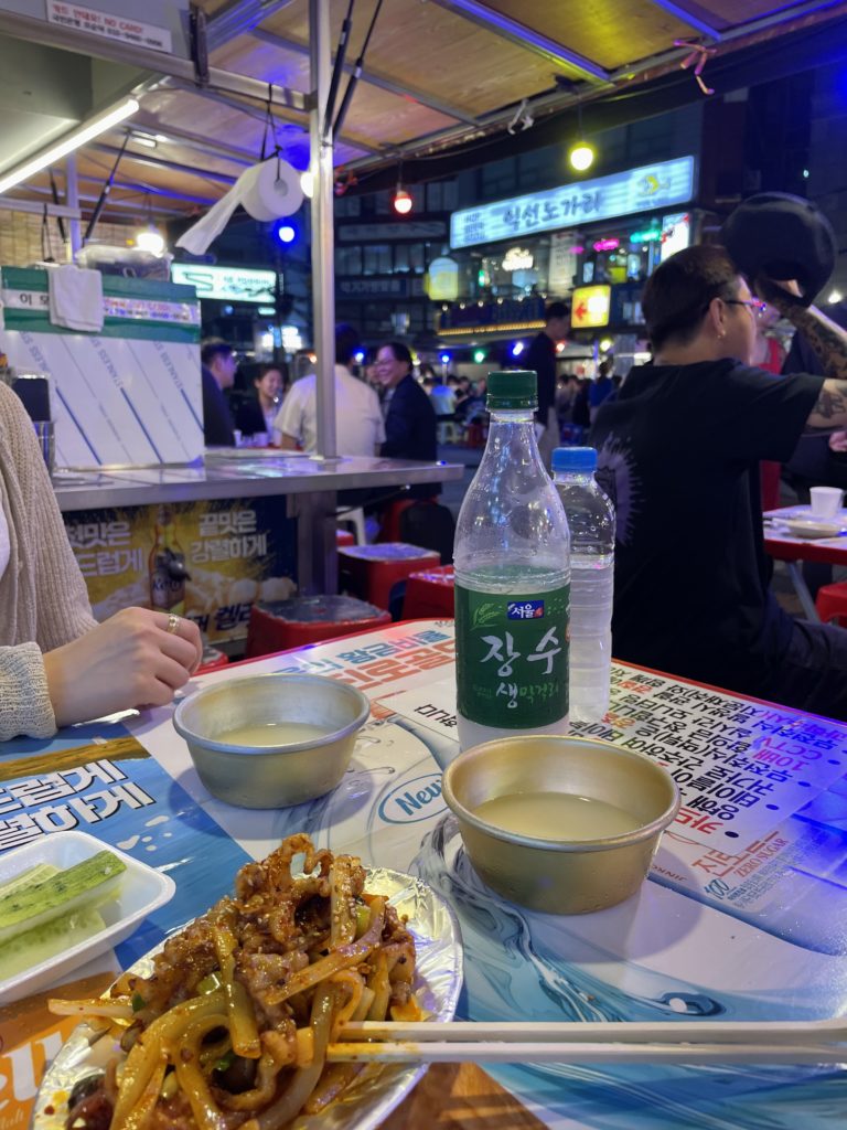 ここでは軟骨の炒め物とかを頼んで、マッコリと焼酎を楽しみました🍶